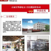 石家庄华泰电力工具有限公司,创办于1989年,坐落于魏征故里,著名的“中国鸭梨第一乡”——晋州市,公司是集设计、生产、销售、服务为一体的电力工器具专业生产企业。公司现有员工280人,专业资质技术人员92人,大专以上学历50人,公司技术力量雄厚,检测手段齐全,其产品质量在全国同行业中位居前列。公司主要产品:电力安全工器具力学性能试验机(万能拉压力试验机、安全工器具拉压力试验机)即拉力试验机、ABS安全帽、安全警示带、高压验电器、普通安全工具柜、智能安全工具柜、拉闸杆(令克棒)机械冲孔器、液压冲孔器、个人保安线、接地线、登高板、安全围栏、绝缘操作杆、绝缘梯等各种电力安全工器具、电力安全工具、施工工具、电力工具、检修工具、电力机具、金具电器、非标金具、压接钳公司产品畅销全国各省、市、自治区,并在部分国家重点工程中配套使用,深得广大用户的信赖和好评。